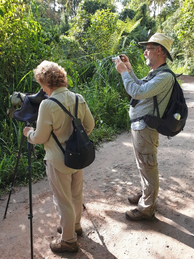 Some of the birders were a bit intense, and we struck up a friendship with a Netherlands couple. She had a wicked sense of humour, and she and I did have some very non serious giggly moments!! Here are Chris and I looking like proper birders!