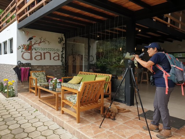 After our very long journey, we arrived late to a lodge, Las Terrazas de Dana, and were shown to our cabin up a very long flight of steps. The owners organised dinner for us on the veranda, and although it was too dark to see much, we sensed we were somewhere special, although the insect visitors were a bit alarming!