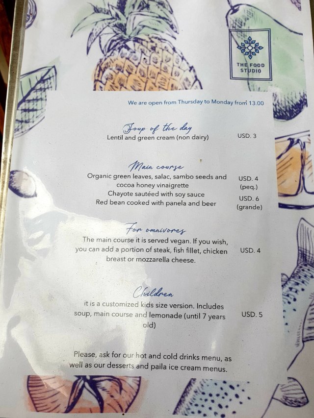 We found the delightful Food Studio, a Vegetarian/Vegan restaurant run by a charming Ecuadorian couple. We had an unusual but delicious supper there, and loved the fact that if you weren’t fully embracing the Green life, for $4 extra, you could add a piece of beef, Chicken, Fish or cheese! A cunning way to broaden your customer base, and cater for groups with mixed eating needs!