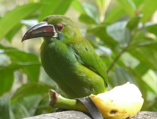 Despite our long day travelling, we couldn’t waste any time… although when the alarm clock woke us at 5am I did momentarily doubt the wisdom of booking the early morning bird walk!! We went down at 6.00 to meet Julia, our guide, and left in the dark to climb up the hill. As it got light, Julia came to life, planting her telescope down and calling ‘Hurry hurry, Look look, special bird’ as she pointed out lots of new and magical birds. 3 species of Toucan, Laughing hawks, brightly coloured Tanagers, Parrots, and many more.