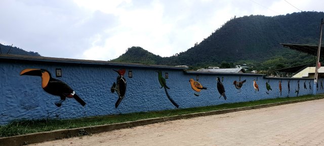 Later we walked down into the local town, Mindo. It is an unspoiled Ecuadorian town, and although many of the houses were very basic, and there were people who obviously had very little, they were happy, friendly, and never once were we asked for money or help. Birds and colour seem to be a big part of their life. Murals adorn many walls, including the football ground!