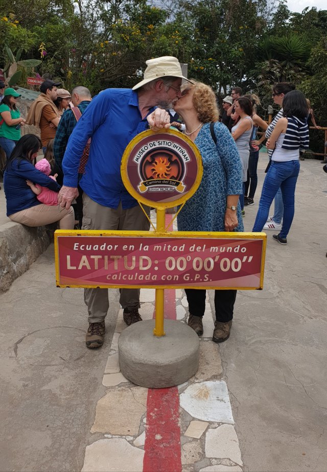 Quite how this all works, we aren’t sure because new scientific measurement suggests the real equator might be another few hundred metres away! Anyway, it was fun, and we had a kiss across the equator, one in each hemisphere!