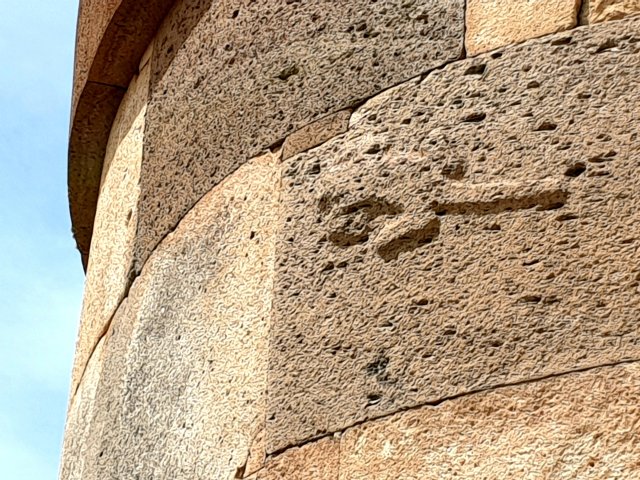 Each tower had a small opening to the east, through which their spirit would be reborn to the God of the Sun. This opening was surrounded by a half Andean cross. When the sun rises at the solstice, the shadow makes a full cross. Each Incan leader would have his symbol carved on the tomb, as they had no written language. This is a lizard.