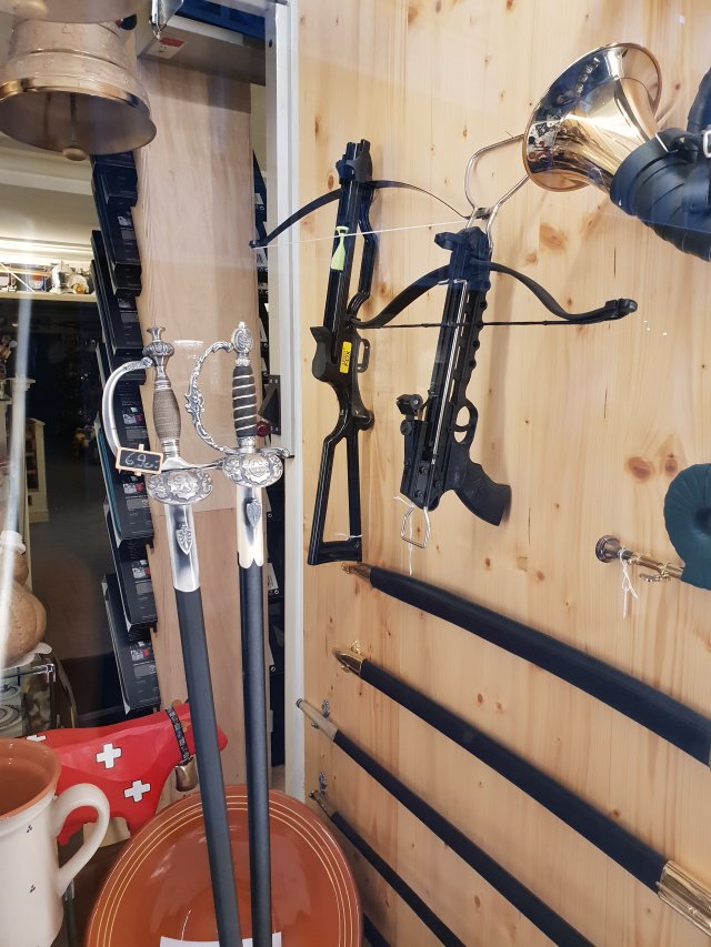 Their shops also sell an alarming array of potential souvenirs! Crossbow anyone!