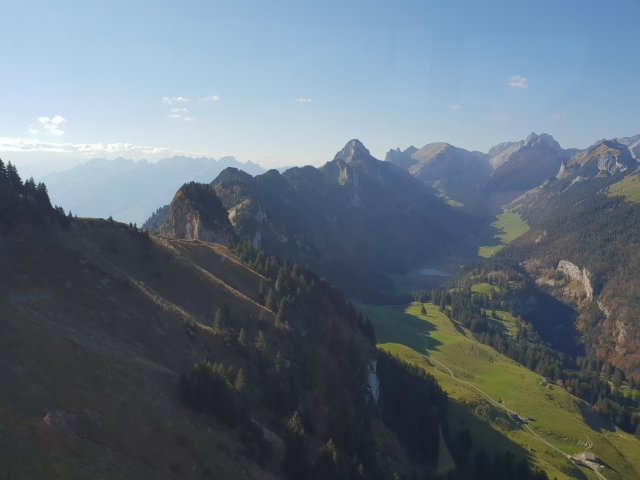 A lovely, peaceful night, then we treated ourselves to a cable car up to Hoher Kasten, with stunning views at the junction of 4 countries – Switzerland, Austria, Germany, and Liechtenstein (and a very strong wind!).