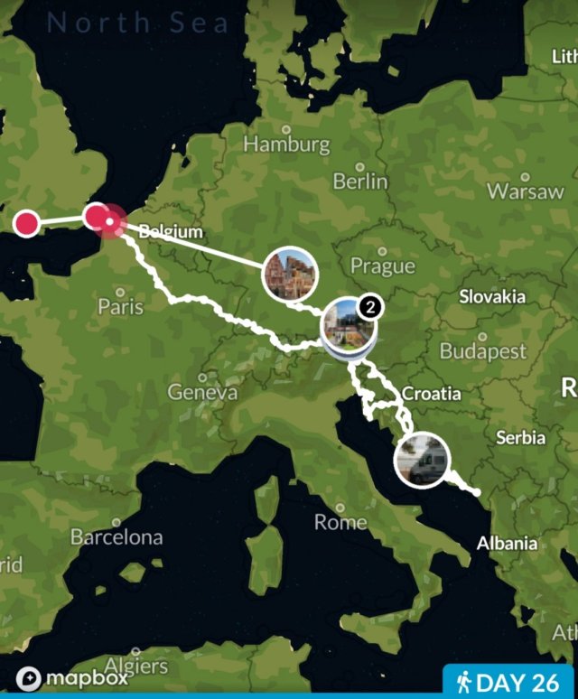 What a super trip. We enjoyed it more than we expected given the cool grey weather, and in fact, by being unplanned, we were free to pick our route, and follow the dry weather, which we did pretty well. We were certainly much drier than they were in England. Our route looks wiggly, but it was very logical!