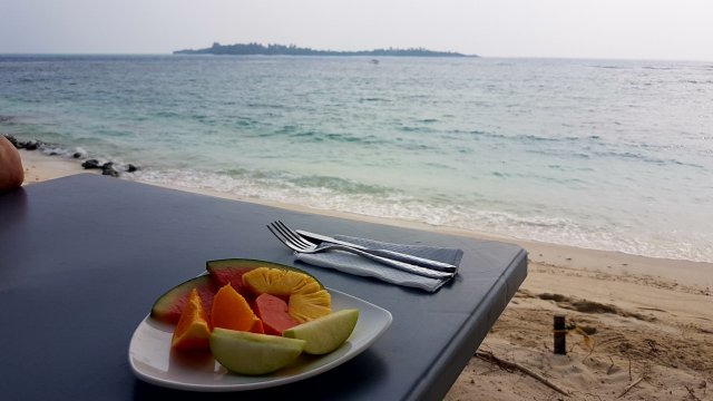 We ate out on the sand every day.