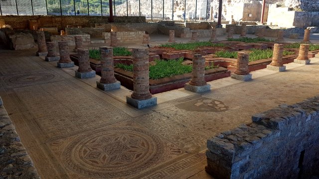 Best of all is the church, or Basilica, which was built in 1031 on the site of an early Romano christian church . Bishop Poppo, in 1031, had a red tiled floor laid over the original 4th century floor. That has been uncovered and is stunning! It is the largest paleo christian mosaic floor in the world. The detail is remarkable.