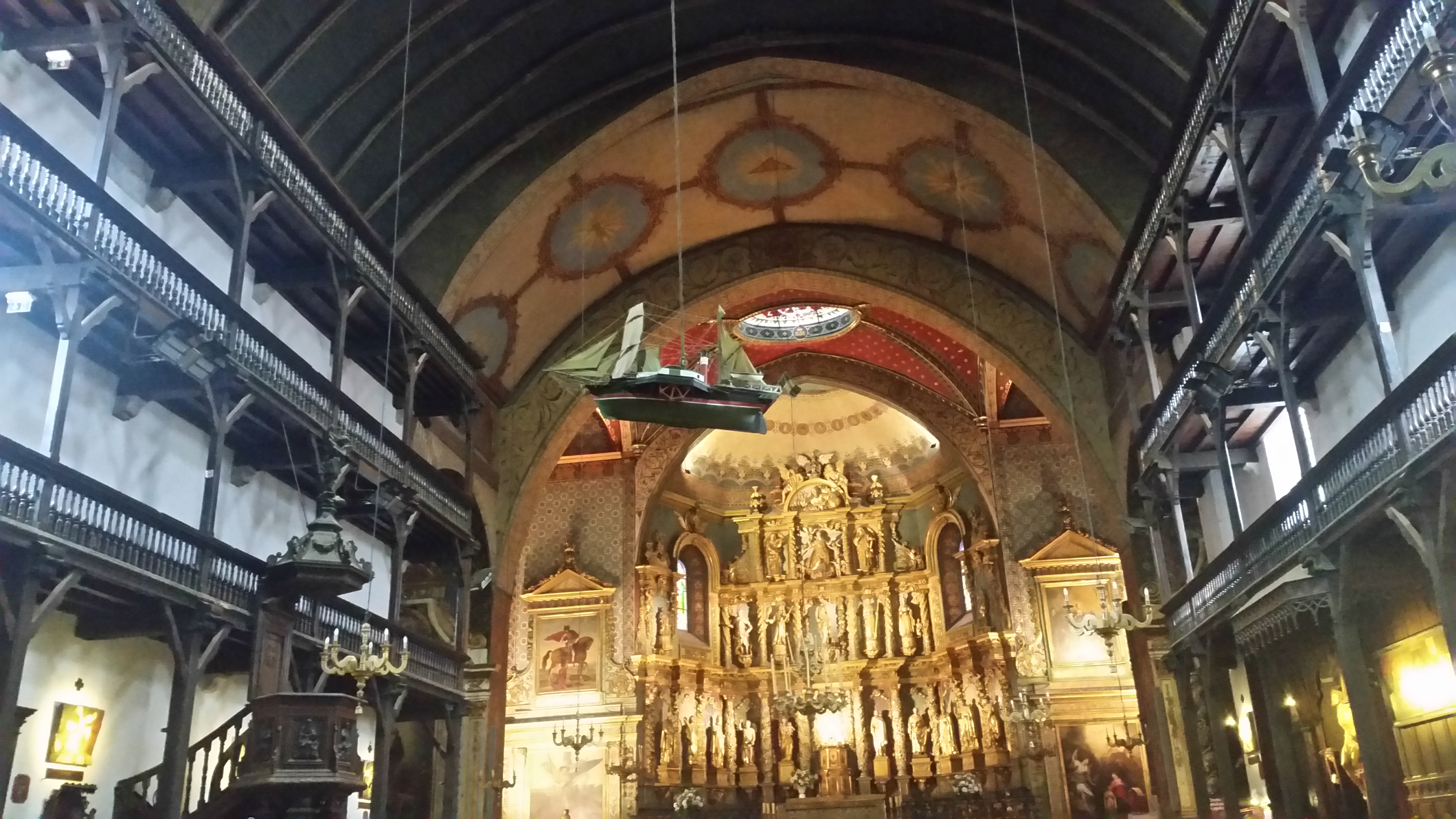 St Jean de Luz is a beautiful town that has had good fortune throughout the years. Firstly it became a wealthy port due to lucrative fishing in Newfoundland. Naval wars in the 16th and 17th centuries put an end to this, but the armed ships were put to use by the naval Corsairs .. legalised pirates one might say. They brought great riches back to the town, and many grand buildings were built, including the unbelievable church, with its 3 tiers of galleries!