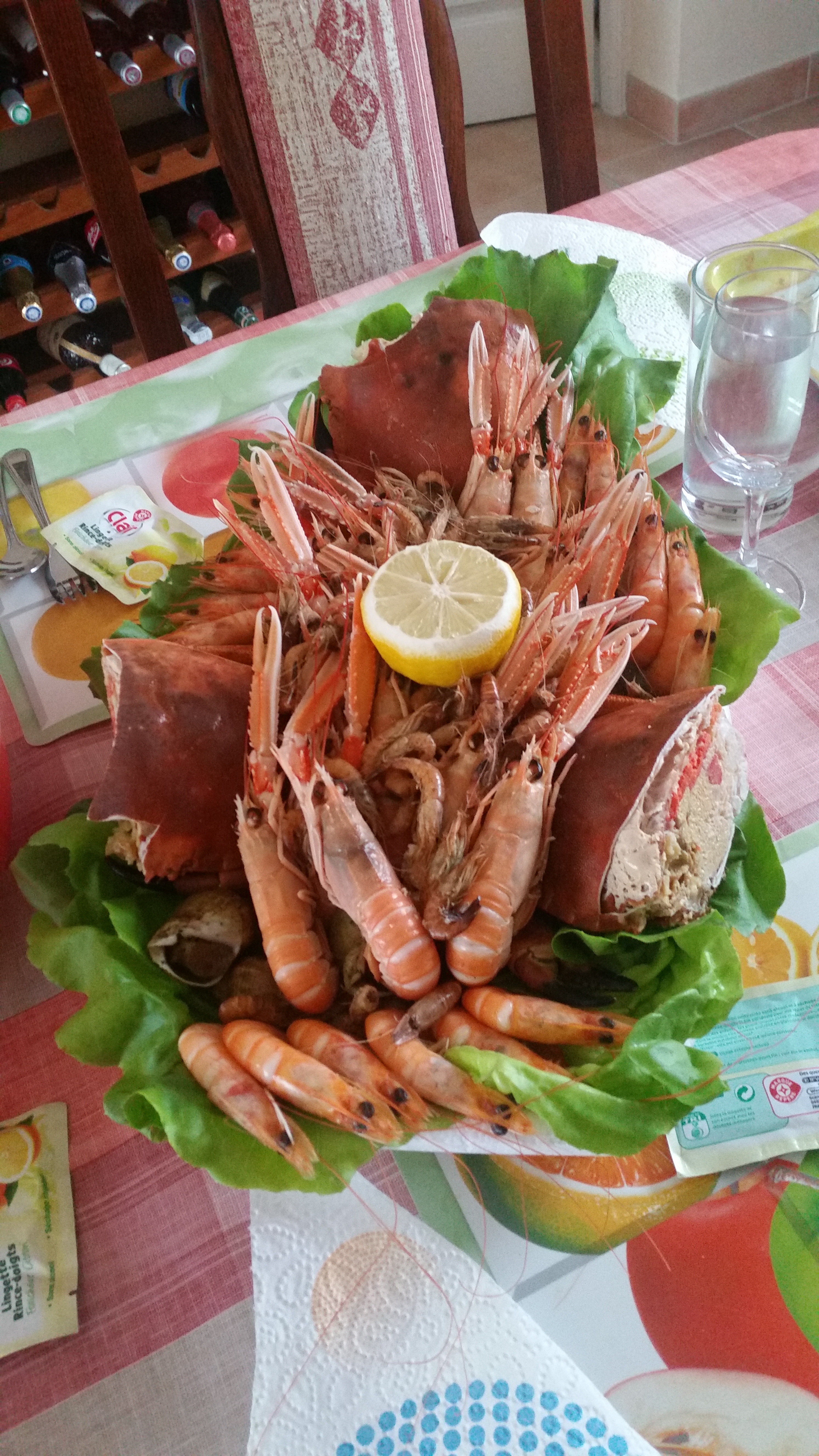 We had a lovely afternoon and evening catching up on news and enjoying a scrumptious Fruits de mer supper. I’ve never seen so many Oysters and Prawns, and the Crab was wonderful.